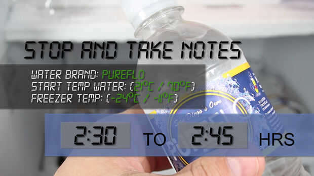 La forma más fácil de averiguar el tiempo de congelación ideal para sus botellas, es iniciar con las botellas a temperatura ambiente y poner varias botellas en el congelador al mismo tiempo. Esto aumentará las posibilidades de éxito.