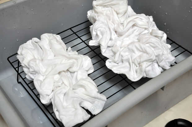 Scrunch encima su dyeables empapado de soda al azar y ponerlas en la parrilla. Si usted quiere, puede les plisado o atar para arriba más como Tie-Dye. Depende de usted.