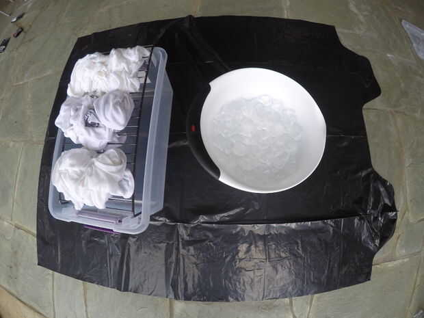 Este Instructable combina hielo teñido y batik cera! Teñido de hielo crea una mirada fresca de acuarela psicodélica y que usando la cera de batik para crear un signo de la paz de Granada en la esquina inferior de la camisa.Vamos a empezar!Paso 1: mat