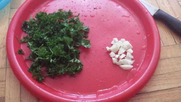 Picar finamente las hojas de perejil fresco y ajo. Dejar de lado