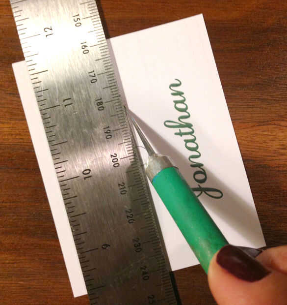 Mina había diseñado en un programa de diseño, pero usted puede crear sus propias tarjetas con cartulina. Ajuste para tamaño, puntuación y pliegan, mano escribir los nombres. Un marcador metálico sería agradable