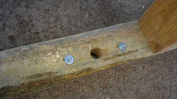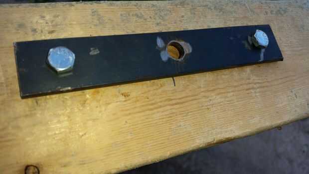 Quería nuevo hardware porque el eje original era demasiado corto para abarcar a través de dos 2x4s. Para resolver este problema cambié de madera de 2 x 4 con 1 "x 3/16" barra de acero. Atornillado el acero a la estructura de 2 x 4 y me taladró una cavidad grande detrás del árbol para colocar la tuerca y una toma en la 2 x 4.