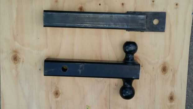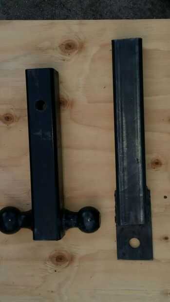 Este enganche está diseñado para enganchar a un enganche de receptor que sólo tiene un agujero no un enganche de bola. El único enganche que tengo es barato puerto la carga que tiene la pelota soldada a él. En lugar de pagar 20 dólares para un enganche con un agujero en ella compré 1 pie de tubo cuadrado de 2 x 2 pulgadas y utiliza la placa de 2 x 1/4" para construir mi propio enganche que cabe en un receptor estándar (que es lo que tiene mi cuatro ruedas) por alrededor de $7.00. Mayoría de cortadoras de césped y muchos cuatro ruedas no es necesario un receptor para hacer este trabajo.