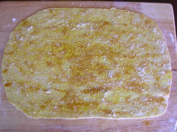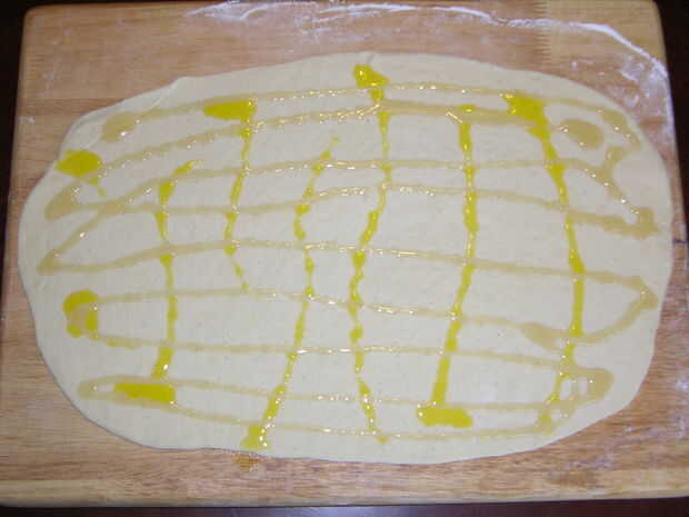 Salpicar el aceite de linaza sobre la masa.