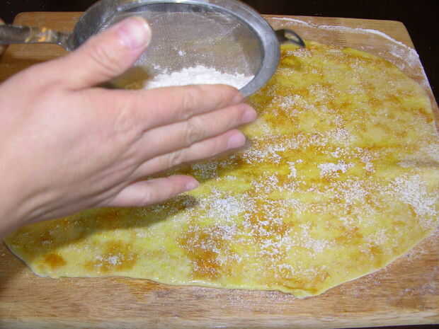 Espolvoree el polvo de la cúrcuma sobre la masa.