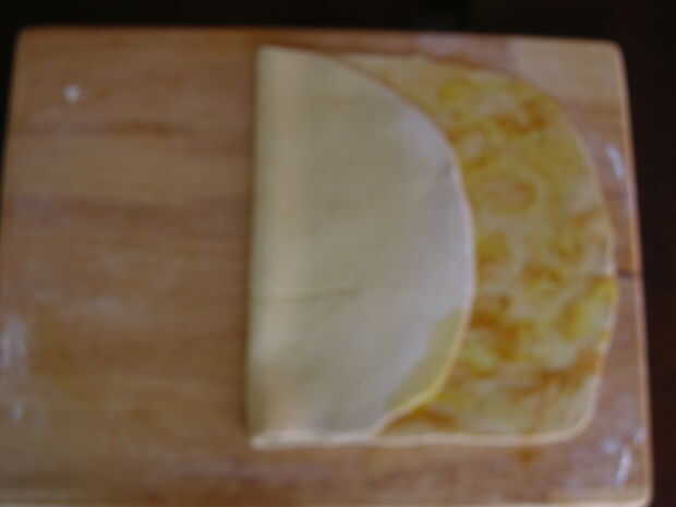 Doblar y desdoblar los cuatro lados de la masa en una fila para distribuir todo.