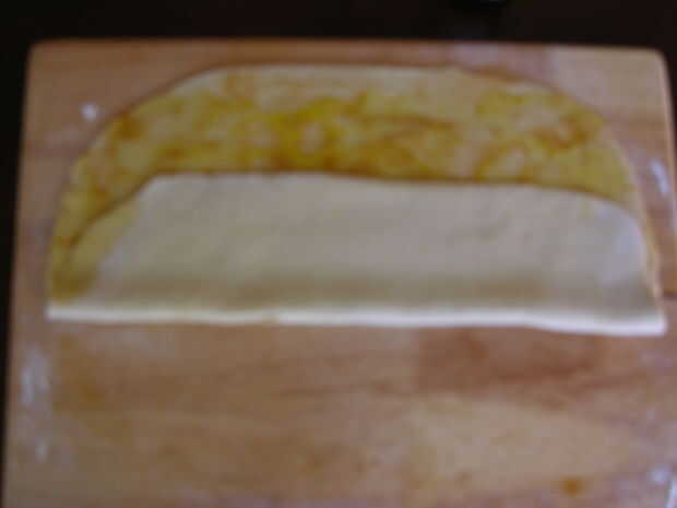 Sobre una superficie enharinada, estirar la masa en un rectángulo de 16 por 10 pulgadas.