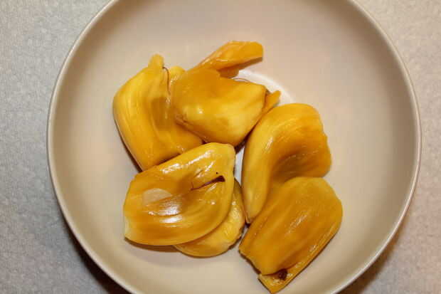 3 arilos jackfruit (esta es la cápsula de fruta dulce en la yaca)