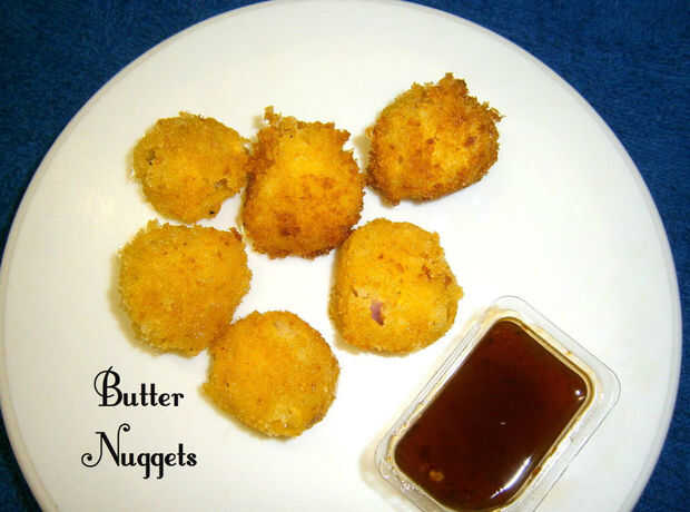 Yo he frito las pepitas de mantequilla apenas como cómo hacer los nuggets. Para que mantener la temperatura de la mantequilla es necesario.