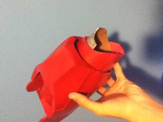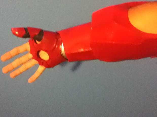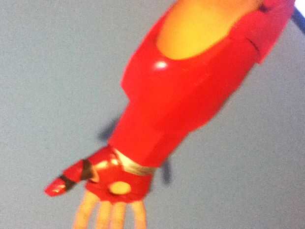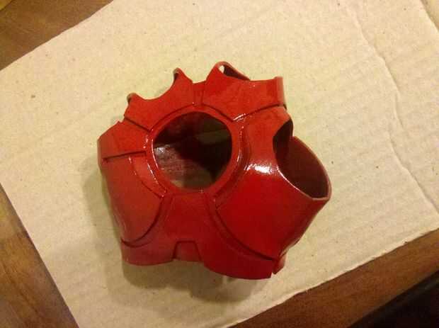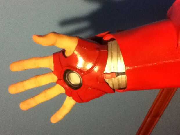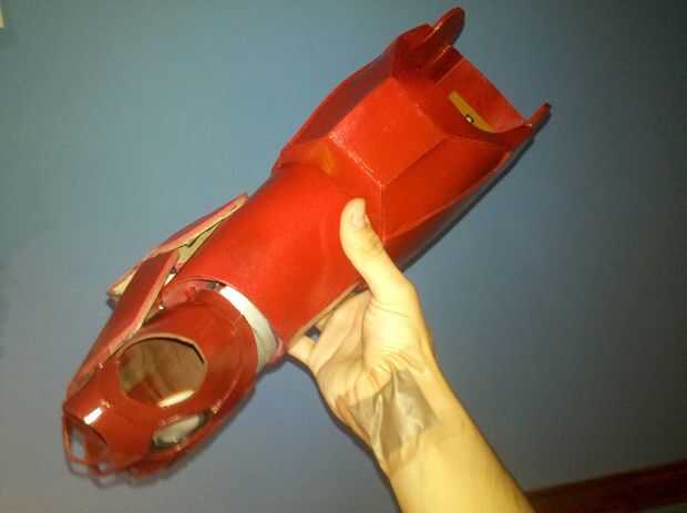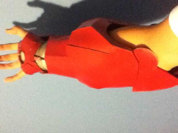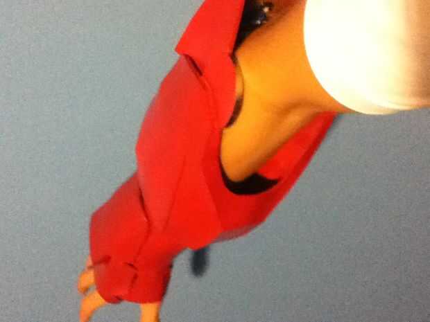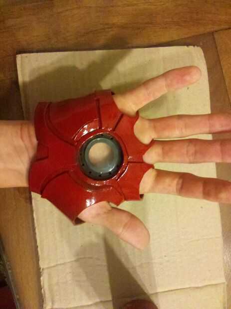 Para los dedos les imprimí en un papel de 120 gr por lo que puede ser rígido y en el mismo tiempo la luz suficiente. Una vez todo fue pintado todo en rojo y plata y oro de la pintura (para los detalles) e instalado la electrónica. Pegar unos imanes en el wirst y en el antebrazo permite la armadura para ser portable y será también attatch a mi wirst debido a mi pulsera magnética (sólo algunos barato Pulsera con un par de imanes orientados en él).