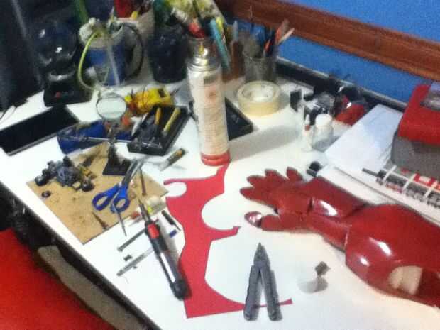 A continuación, descargar e imprimir los archivos pdo de antebrazos de Marcos 7, handplate, mano derecha .once hecho que i cortada la espuma de las piezas impresas y superglued ellos juntos. una vez todo hecho les di 3 capas de pintura de pavimento, esto reforces toda la estructura.