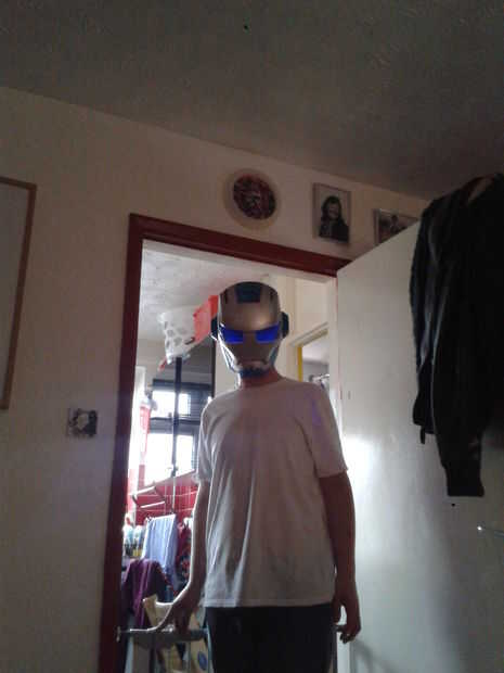 después de obtener el casco de ironman por mi traje y tener mi amigo hacen un molde de látex. decidí probar a hacer un casco de la máquina de guerra. me hizo la preparación y lo pintado luego se dio cuenta que no tenía ningún spray negro en mi arsena