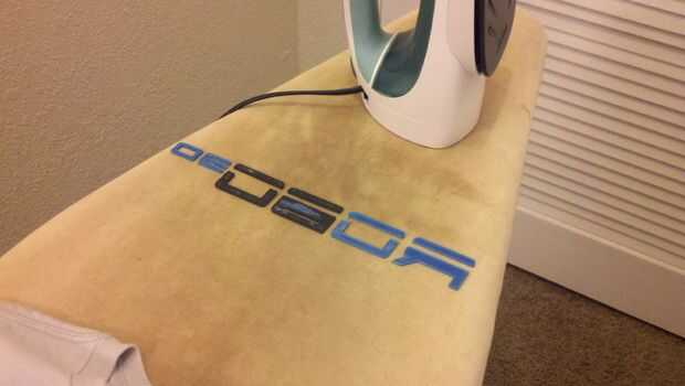 Después de tener su diseño impreso, arreglar tu diseño en una tabla de planchar. El diseño debe ser orientado cara hacia abajo en la tabla de planchar. Si su diseño incluye palabras que deben tener las palabras de la lectura de derecha a izquierda para que, una vez planchada en y desde la parte delantera de la camiseta, aparecen en la izquierda adecuada al orden correcto.