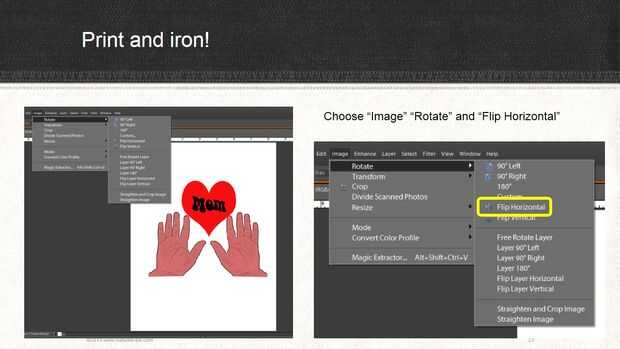 Recuerde que antes de imprimir - debes reflejo la imagen. Si no haces esto, la imagen será invertida y no se puede leer en la camiseta.