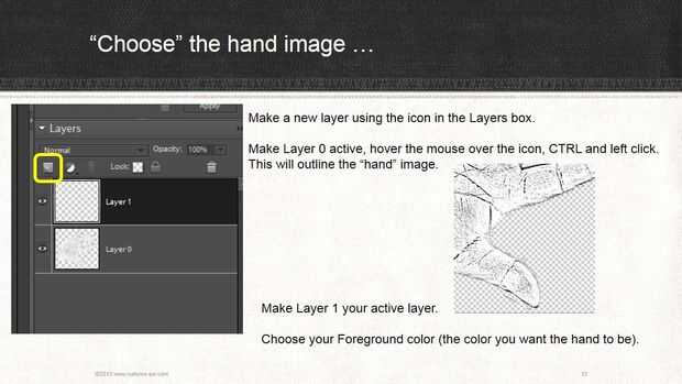 Volver a la capa con solo la mano. Izquierda haga clic en el icono (imagen) correspondiente a esa capa. Debe "elegir" la mano. Debe haber una línea de puntos alrededor de la imagen de la mano.