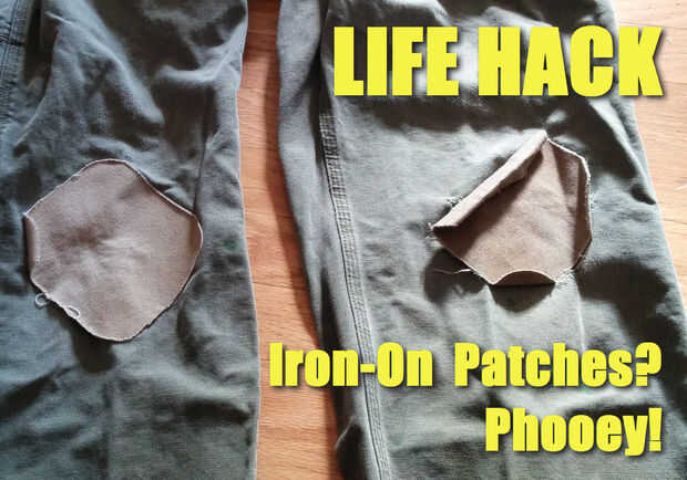 Pensé serían smarty-pants todos (valga la redundancia) y poner algunos parches en las rodillas de mis pantalones agujereados para conseguir unas pocas millas más de ellos.