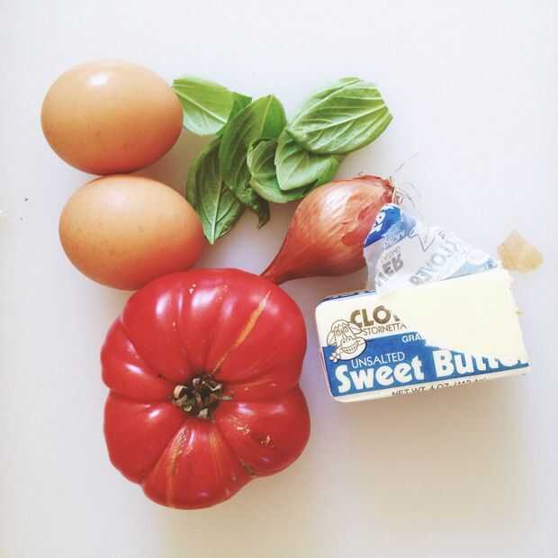 Una de mis cosas favoritas sobre los huevos es lo versátiles que son. En esta receta utilicé un tomate heirloom regordeta, un chalote y albahaca fresca, pero no dude en modificar para incluir lo que ingredientes tienes en la mano. Precalentar el horno a 325 y se reúnen los ingredientes!