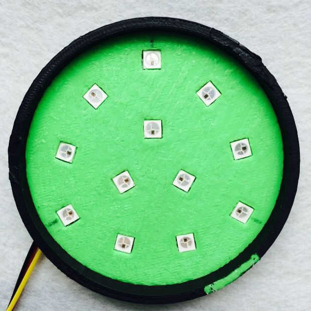 Se nota que ya utilicé el material verde del PLA para imprimir todas las cosas, y que resultó tener un defecto como la fuga de luz podría afectar los efectos de luz en la oscuridad. Así que mejor eliges un material oscuro o pintura en negro antes de armarla.
