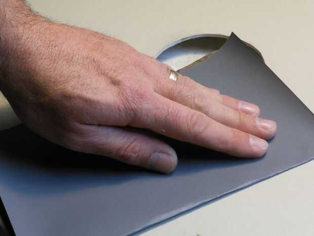 Paso de lijado: papel de arena de grano 600 y la torre entera de PC que será pintada de arena.