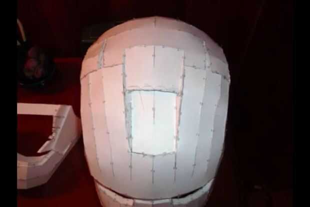 Una vez que tengas todas las piezas de cortan, empezar pegando o encintado de juntas. Prefiero pegarles porque hace un acabado mejor y más limpio. Esta parte no tiene tanto tiempo como el corte, pero si usted toma su tiempo, que recomiendo, tarda un buen rato. para mí, tardó cerca de 6 horas de pegado. ¡ Felicidades! Haya terminado la parte más importante de este proyecto. Si quieres, sólo puede parar aquí, pero te recomiendo que continúes la fibra de vidrio para hacer este casco 100% mejor.