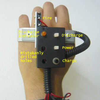 2) carga – Push ON, versión interruptor. Esto desencadena la carga del condensador. Comenzará a gemir, aumentando poco a poco en el tono que es de pago.