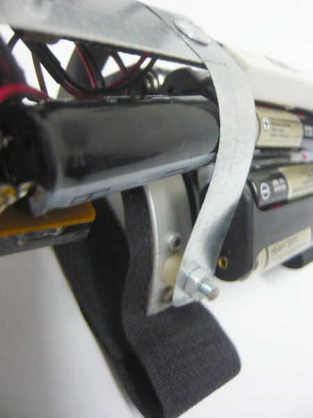 Tiras de aluminio, abrazaderas de plástico, organizadores de cable, separadores, pegamento caliente y algunos pernos y tuercas para los toques. El ladrillo blanco pequeño es la resistencia de descarga de 10 Watts montada en el soporte de la batería.