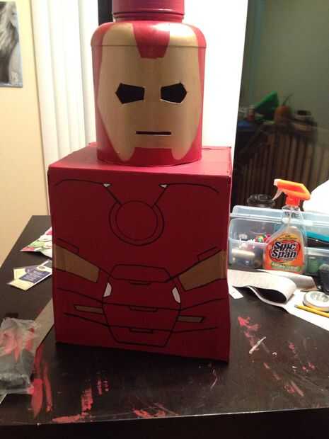 he usado mi viejo cubo de proteína para la cabeza y solo cortar la parte inferior. He pintado todo con pintura de acrílico Borgoña, blanca y oro y utiliza un lápiz de pintura para los detalles.