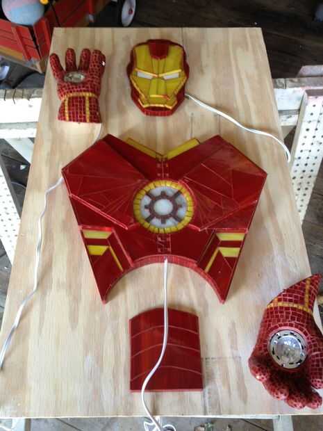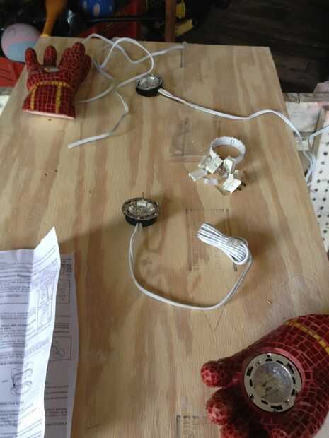Ahora que todo el vidrio está acabado todas las luces del LED tienen que cablearse y agujeros perforados en sólo los puntos en la base de madera contrachapada. Después se coloca el vidrio, la madera contrachapada se marcará. La madera también está pintada del mismo color que la boquilla, en caso de que cualquier muestra throug.