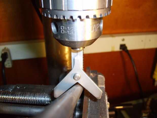 Configurar siempre es el paso más importante en el trabajo como esta. Para el modelo que hice, necesitaba un ¼" agujero en una varilla de 3/8" de diámetro. Esto deja 1/16 a cada lado del agujero. No mucho espacio para el error. Hay varias maneras de encontrar el centro de un objeto redondo. Si tienes una mesa x-y buena con lectura digital y un buscador de borde, entonces probablemente no tengo que decirle cómo usarlo!