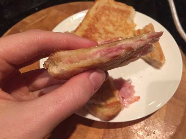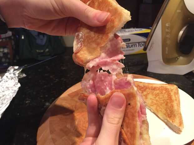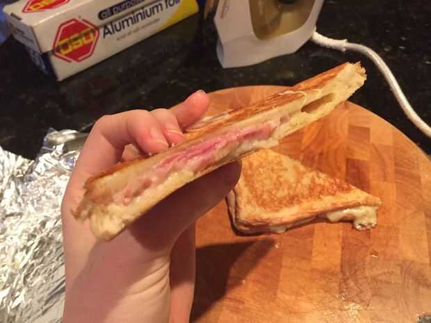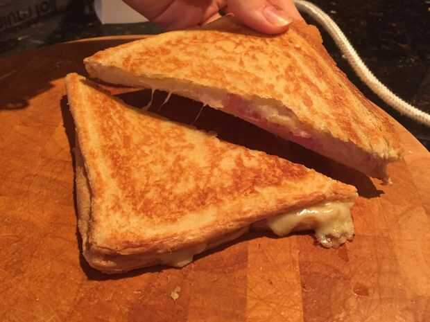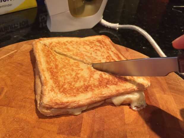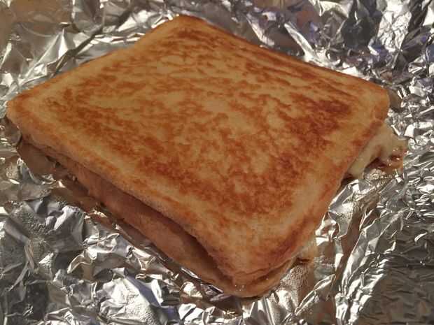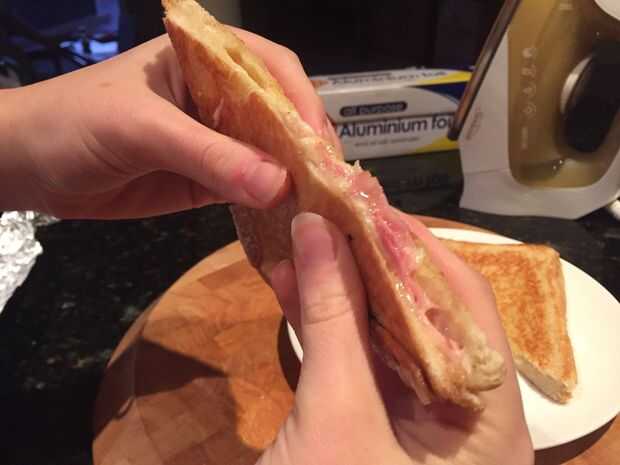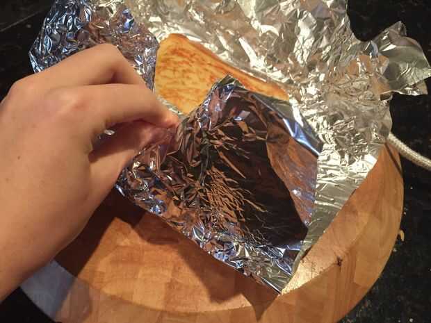 Una vez que han 'tostado' su sándwich abierto con mucho cuidado tu papel de aluminio que estará muy caliente. Corte el sandwich y disfruta!!
