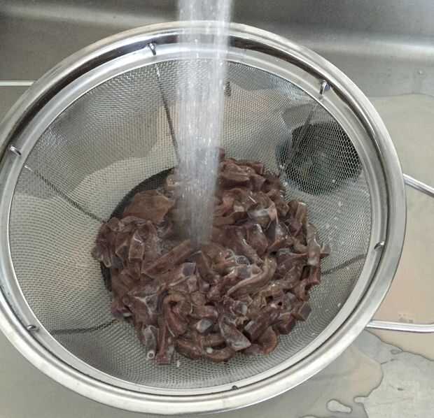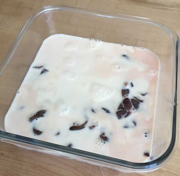 Sumerja el hígado en leche durante varias horas y refrigerada, luego deseche la leche y enjuague nuevamente con agua.