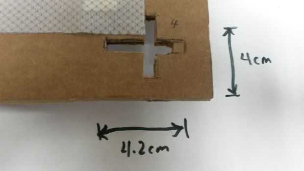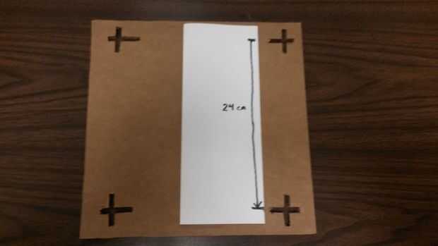 1. Corte cuatro 4.2 cm por 4 cm cruza en una hoja grande de cartón. Ellos deben ser espaciados tales que cada cruz sería en una esquina de una 24 cm por 24 cm cuadrado.