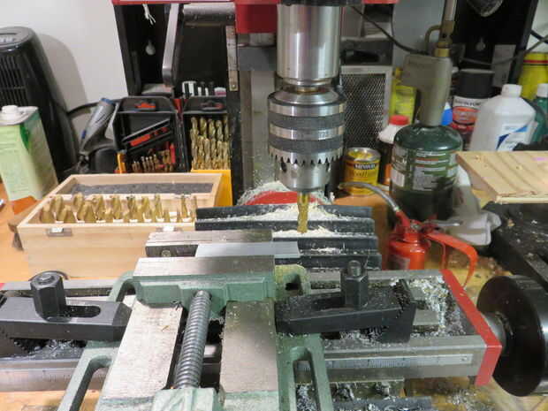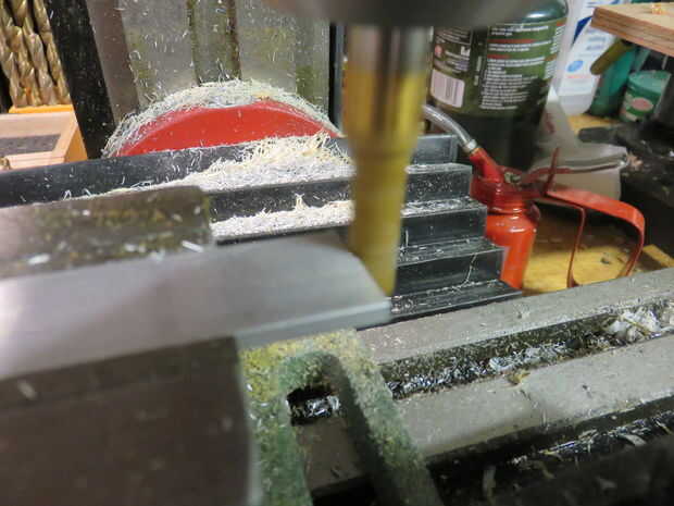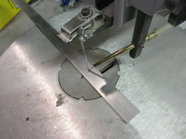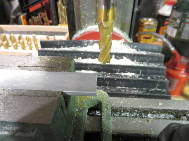 Coge una sección de 1/8 "x 3/4 barra de aluminio de la ferretería. Creo que cuesta sobre $7,00 para una sección de 3'. Corte seis secciones cada 3" largo. Utilicé una sierra de calar para hacer esto. Una vez que se la coloqué en mi mini molino de cuadrado hasta los bordes. No olvide sus gafas de seguridad.