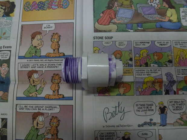 cómo hacer un lanzador de la botella de agua de piezas de pvc. Puede disparar a muy largas distancias. Lo que necesitas es: cerca de 2 pies de tubería de 1/2 pulgadas, dos 1/2 pulgada roscada para esquinas de 3/4 de pulgada, dos acoplamientos de 1/2