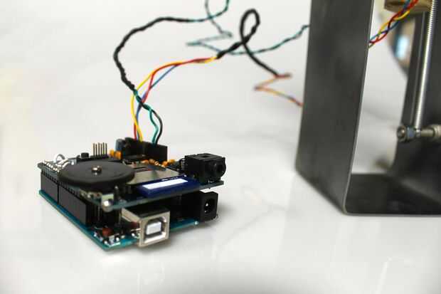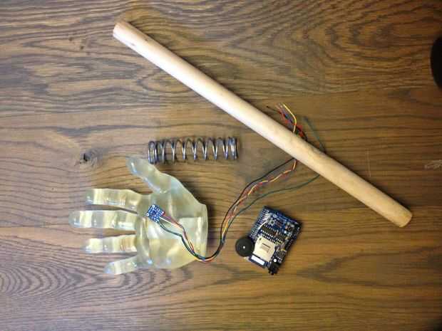Básicamente, los pivotes de la mano/espiga alrededor de la varilla roscada, que está bloqueado en su lugar con las tuercas - un resorte en la base proporciona la tensión de la mano volver a neutro. Sólo usa una abrazadera en C para fijar a una mesa y vieron mis compañeros de trabajo, tortazo mientras caminan por. Un pequeño Altavoz con USB con un conector para auriculares proporciona el sonido y solo recogí un enchufe del USB dual para alimentación y la placa arduino con una sola salida.