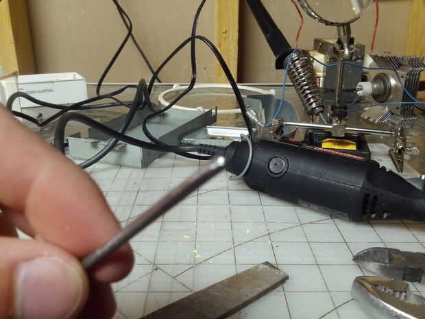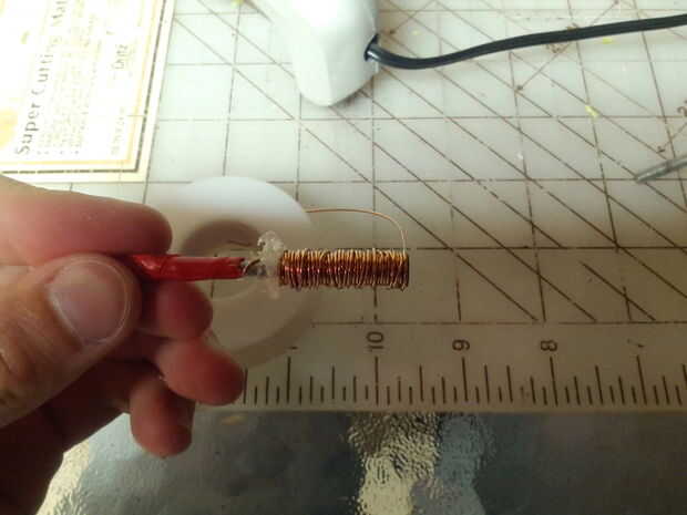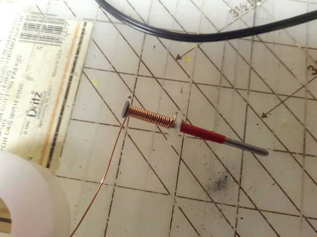 Cuando empiezas a envolver el alambre, asegure el extremo del alambre con un poco de cinta fuera de la pared de pegamento caliente. Envuelve una bobina de alambre no es muy difícil y hay otros Instructables que hay que explicarlo, así que no entraré en ella ya.
