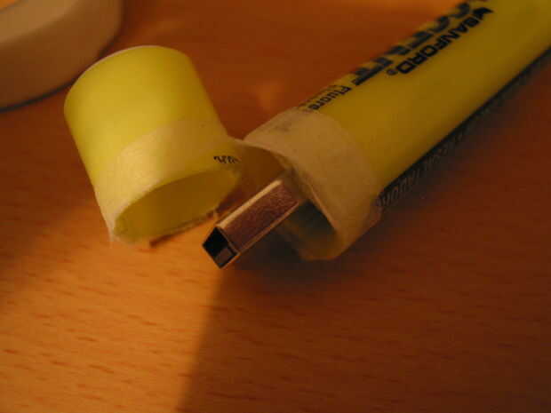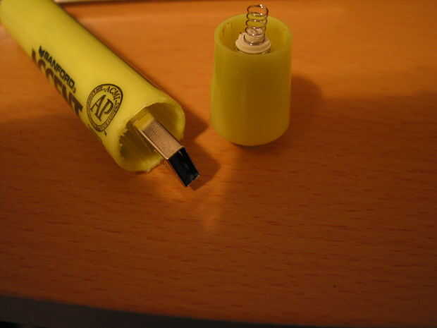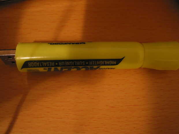 cómo reciclar un marcador y poner a buen uso. En primer lugar se necesita un marcador utilizado y una unidad usb y luz led.