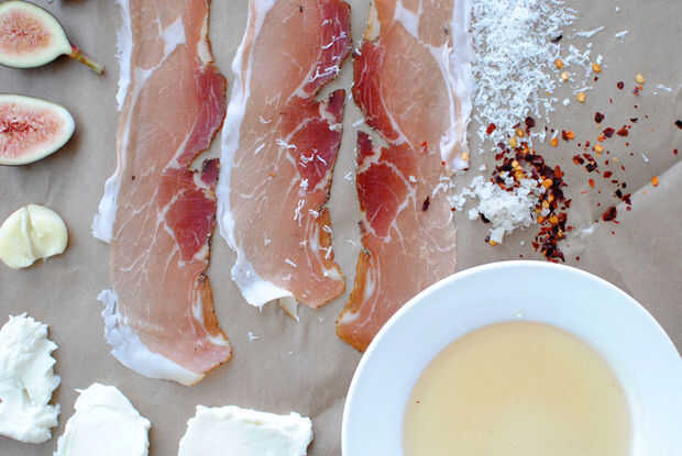 Pizza de Speck y Fig. Ingredientes: