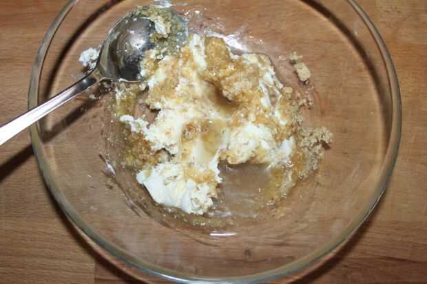 En un procesador de alimentos moler más de la mitad de la tuerca de pared grueso - reservar las piezas mejor aspecto para la decoración. Tenga cuidado de no sobre proceso. Mezclar miel o azúcar, Madeira o Jerez y tuercas de tierra en el queso fresco.
