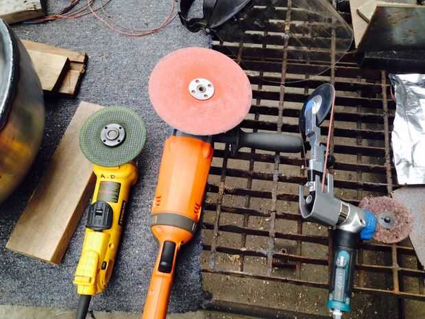 Empecé con un papel de grano 80 arena para vestir todas las soldaduras de esquina exterior que podría alcanzar con una amoladora angular de 7". Para vestir el interior soldadura de esquinas, caminó hasta un grano 80 flexible que produjo una articulación limpia el disco abrasivo.