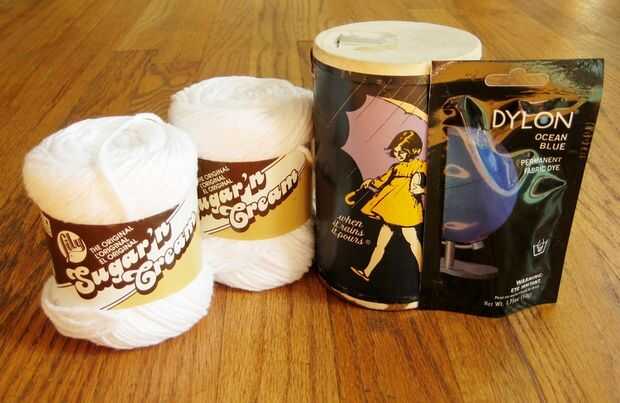 -tinte - elegir una que esté etiquetado para utilizar con la fibra, esto es Dylon tinte de tela en "Océano azul" (pero tenga en cuenta que es un tono muy púrpura azul!)