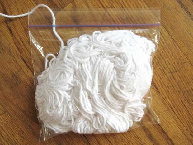 Poner cualquier hilado que no desea teñidos en una bolsa de plástico y zip para arriba como usted puede. Esto es para evitar accidentes.