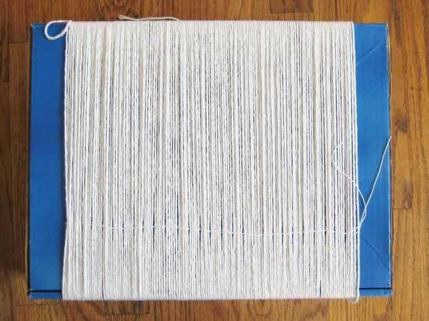 Encontrar un objeto de tamaño moderado que no enganchar el hilo - este es el cuadro guardo mis fuentes que hacen punto en. Es aproximadamente de 12 x 18 x 4 pulgadas. Envolvió 2 madejas de hilo Sugar ' n Cream alrededor de él, si se trabaja con hilado más necesitarás un objeto más grande (y obviamente, si tienes una deformación Junta utilizarla!) Cortar unos 2 pies de lazo de cadena. Empezar a envolver el hilo alrededor de la caja mantener las filas incluso y no están comprometidos. Tejer el lazo cadena entre alrededor de cada 5 vueltas. Continuar hasta que todo el hilo ha envuelto su objeto.