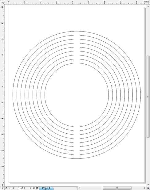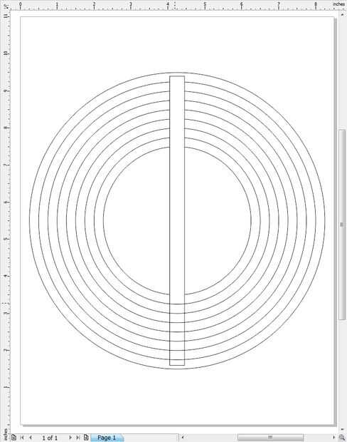 Dibujar un rectángulo de 0,4 "x 7,8" centrado en el centro del círculo.  Esto se superpondrán todas menos el círculo externo.  Elimine todos los segmentos de arco dentro del rectángulo, luego eliminar el rectángulo sí mismo.