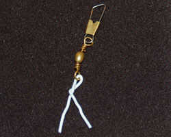 Desdoblar un clip de papel (yo usé un clip de papel blanco). Enrosque el alambre del clip de papel hasta el final del eslabón giratorio del rodamiento de bolitas. A continuación, tuerza el alambre juntos una o dos veces para formar un bucle.
