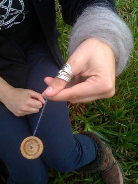 Repita este proceso, moviendo la mano delantera hasta el final nuevo de la sección torcida, volviendo a su mano izquierda, redacción y dejar que toque en la fibra recién elaborada. Cuando desea añadir más toque, sujete el hilo con la mano izquierda en la parte inferior del triángulo de redacción, donde se transforma la fibra en hilo - es importante mantener una correa en ese giro. Utilice la otra mano para girar el husillo, construyendo más torcedura y parque nuevo. Continuar hasta tener un pie o dos de hilo, luego pasar al siguiente paso.