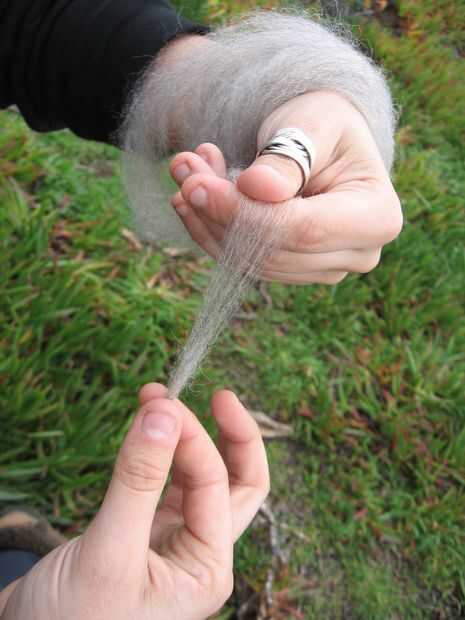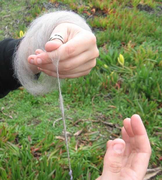 Subir la mano derecha a la izquierda y apriete donde termina el giro, liberando su mano izquierda para retroceder. La fibra entre las manos es llamada el "triángulo de la redacción". La cantidad de fibra en el triángulo de redacción determinará el grosor del hilado final. Si quieres un hilado más fino, el proyecto a la fibra en el triángulo más. Cuando esté satisfecho con el grueso del triángulo de la redacción, soltar la mano (derecha) frontal, dejando que la torcedura a acumular en el triángulo y haciendo hilo!