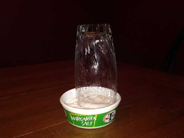 Moje el borde del vaso corriendo bajo el agua. Esto permitirá que la sal se adhiera al borde del vaso.