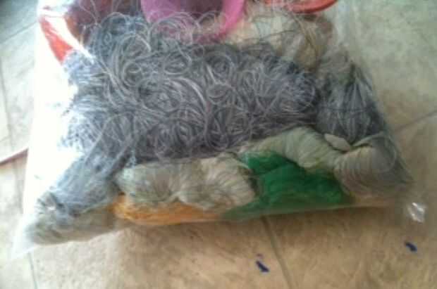 Mi mamá tenía cargas de hilado que es inútil para ella ya que es todo enredado... so..ere es lo que hicimos con él :-) Necesita cargas de hilo de desecho... Pegamento blanco Cling wrap 2 tazones de fuente en la forma que desee Hilo de yute Portarrollos de papel higiénico Algunos espuma de poliestireno