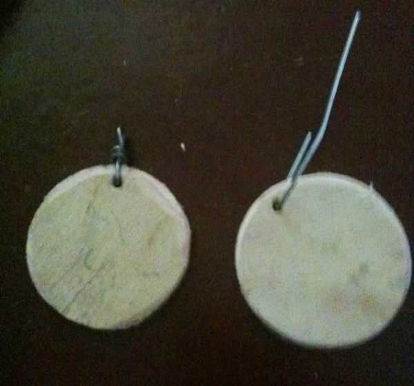 Clavo un agujero para el gancho y pasar un alambre y formar un lazo para el colgante.